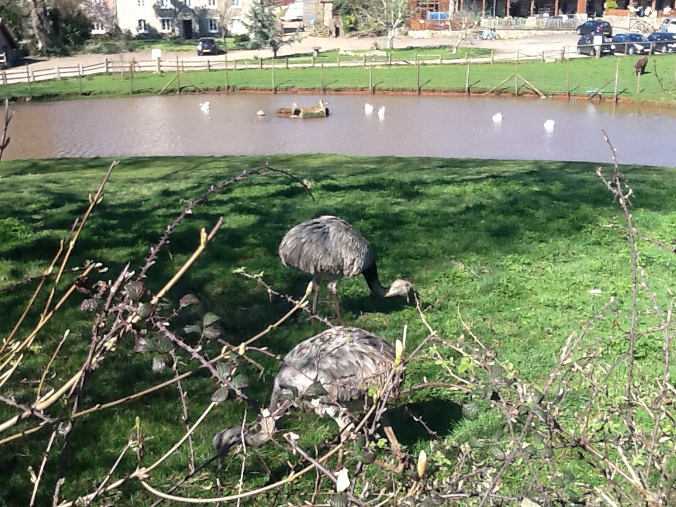 Mendip Hills. Still Somerset but up high. See climb from WellsEmus took me by surprise. Outside Gatcombe Farm Shop.